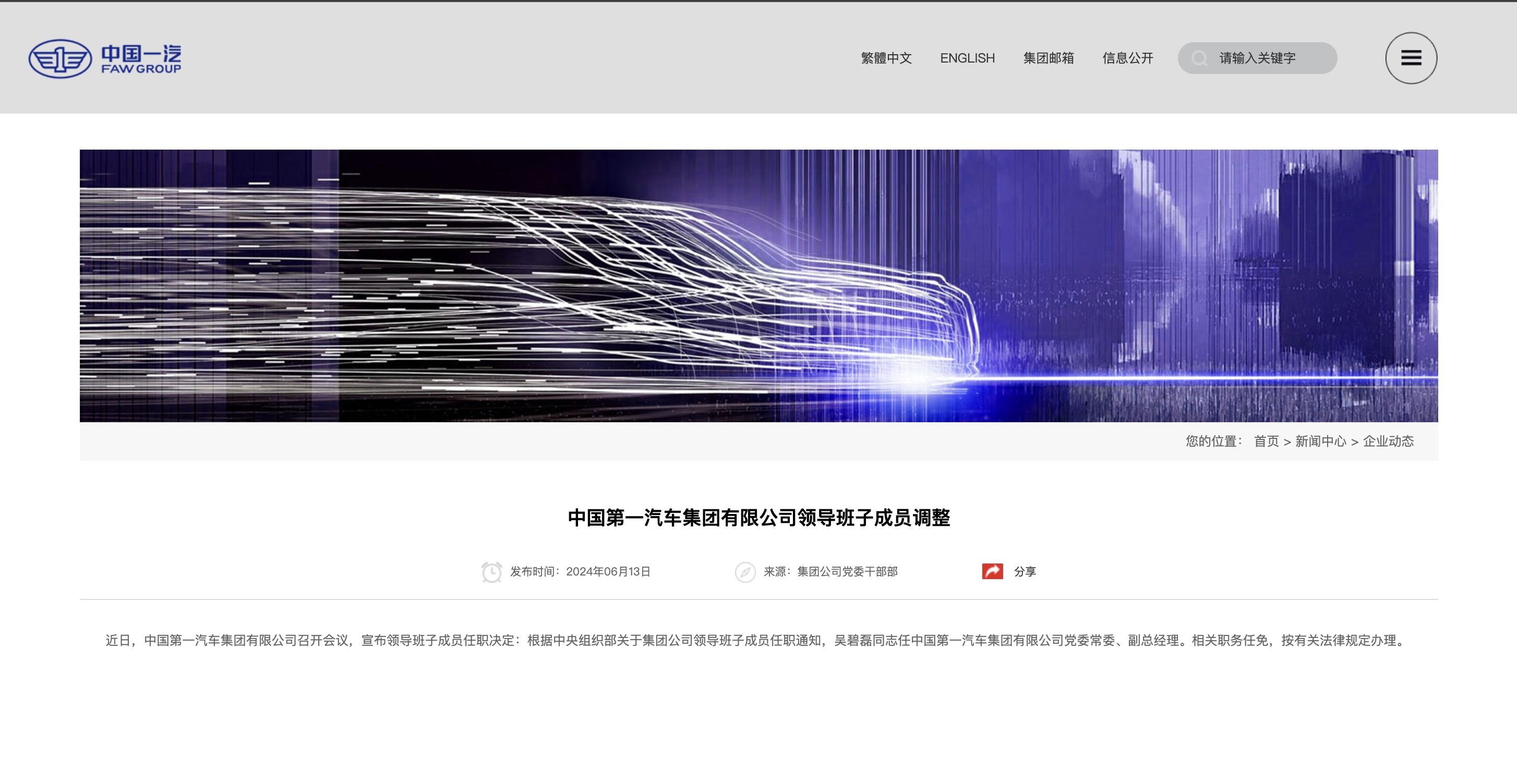 本報(bào)訊 (記者劉釗)6月13日,中國一汽官網(wǎng)發(fā)布公告,近日中國第一汽車集團(tuán)有限公司召開會(huì)議,宣布領(lǐng)導(dǎo)班子成員任職決定:根據(jù)中央組織部關(guān)于集團(tuán)公司領(lǐng)導(dǎo)班子成員任職通知,吳碧磊同志任中國第一汽車集團(tuán)有限公司黨委常委、副總經(jīng)理。相關(guān)職務(wù)任免,按有關(guān)法律規(guī)定辦理。