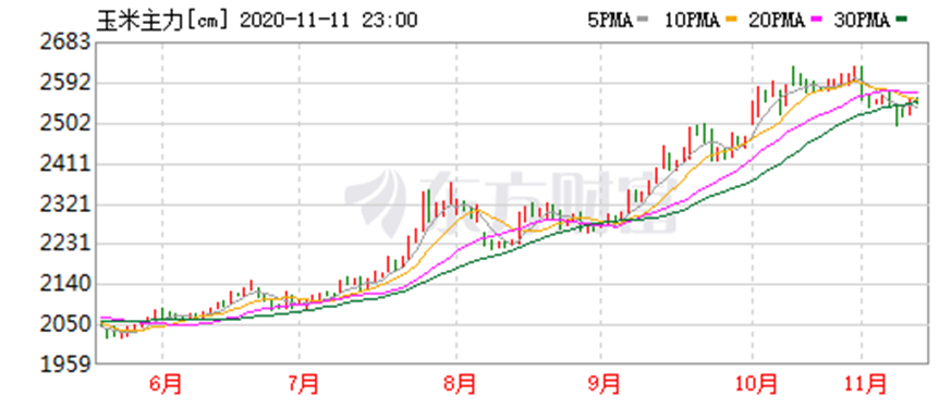 國內(nèi)玉米主力合約一路走高(供圖:東方財(cái)富)