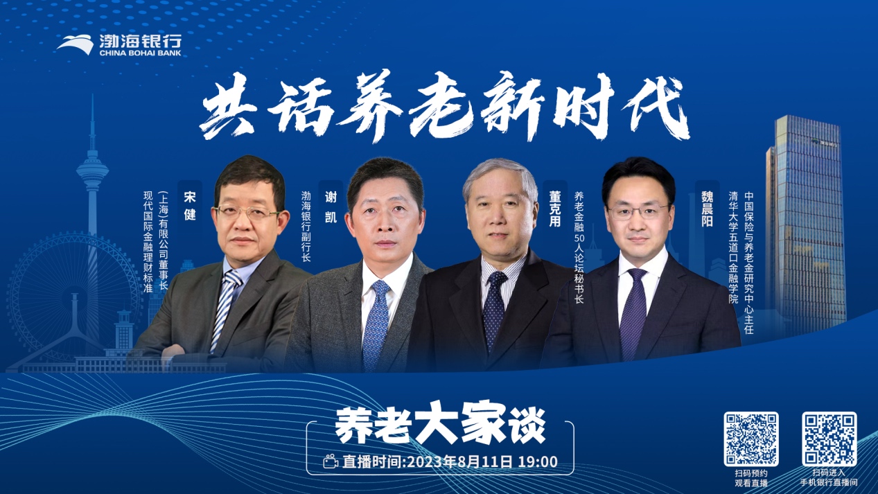 8月11日晚19:00,渤海銀行推出了“養(yǎng)老‘大家’談共話養(yǎng)老新時代”線上訪談節(jié)目,邀請現(xiàn)代國際金融理財標(biāo)準(zhǔn)(上海)有限公司董事長宋健教授擔(dān)綱對話主持人,與渤海銀行副行長謝凱先生、養(yǎng)老金融50人論壇秘書長董克用教授、清華大學(xué)五道口金融學(xué)院中國保險與養(yǎng)老金研究中心主任魏晨陽教授,共同圍繞養(yǎng)老熱點話題暢談各自專業(yè)見解。訪談受到公眾廣泛關(guān)注,節(jié)目線上觀看量將近100萬人次。