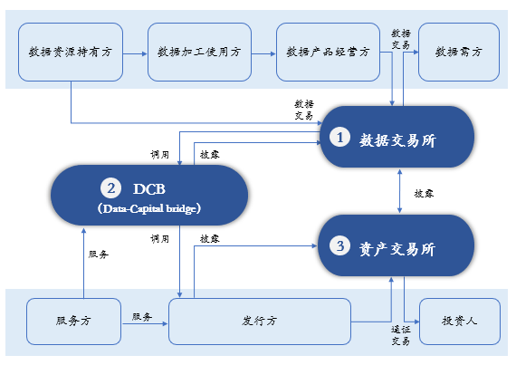圖說:DCB數(shù)據(jù)資產(chǎn)“一橋、兩所、兩軸”架構(gòu)|圖片來源:上海數(shù)據(jù)交易所