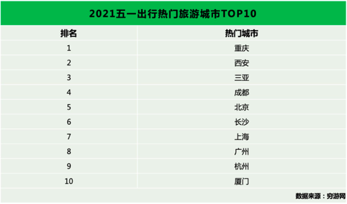 隨著五一假期臨近,國內(nèi)旅游熱度持續(xù)走高。近日,窮游網(wǎng)發(fā)布了《2021年五一旅游趨勢預測報告》。報告顯示,重慶、西安、三亞最受游客青睞,親子游熱度高漲且消費能力突出,親子游在國內(nèi)的單次旅行消費較2019年提高了37.8%。