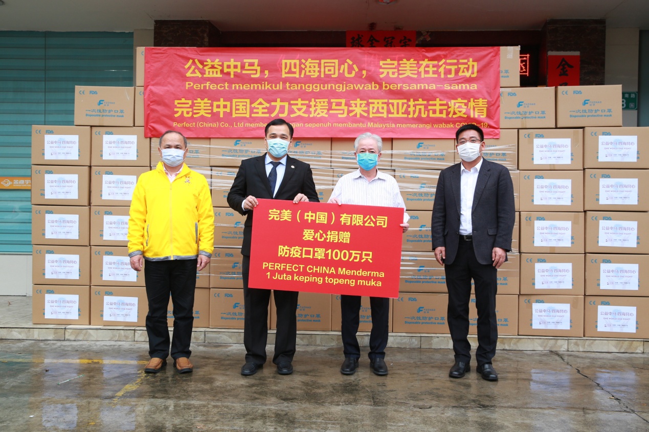 ▲2020年3月31日完美公司向馬來西亞政府捐贈(zèng)100萬只口罩