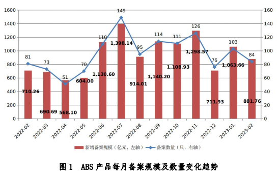 3月20日晚,中國(guó)證券投資基金業(yè)協(xié)會(huì)發(fā)布2023年2月份《企業(yè)資產(chǎn)證券化業(yè)務(wù)備案運(yùn)行情況簡(jiǎn)報(bào)》顯示,2023年2月份,企業(yè)資產(chǎn)證券化產(chǎn)品共備案確認(rèn)84只,新增備案規(guī)模合計(jì)881.76億元。2月份新增備案規(guī)模環(huán)比減少17.10%,同比增長(zhǎng)24.15%。