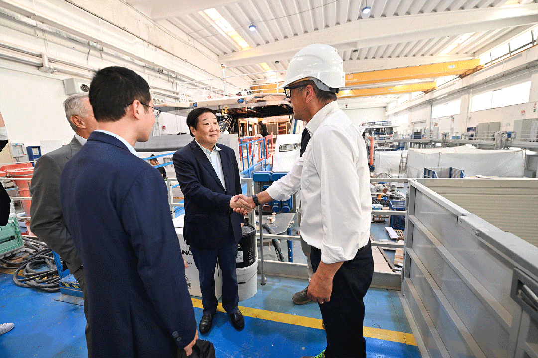 9月11日,譚旭光在意大利馬爾凱大區(qū)首府安科納市,調(diào)研濰柴集團(tuán)旗下法拉帝集團(tuán)超級游艇生產(chǎn)制造基地安科納工廠,詳細(xì)了解近幾年CRN、CUSTOM LINE游艇生產(chǎn)情況。