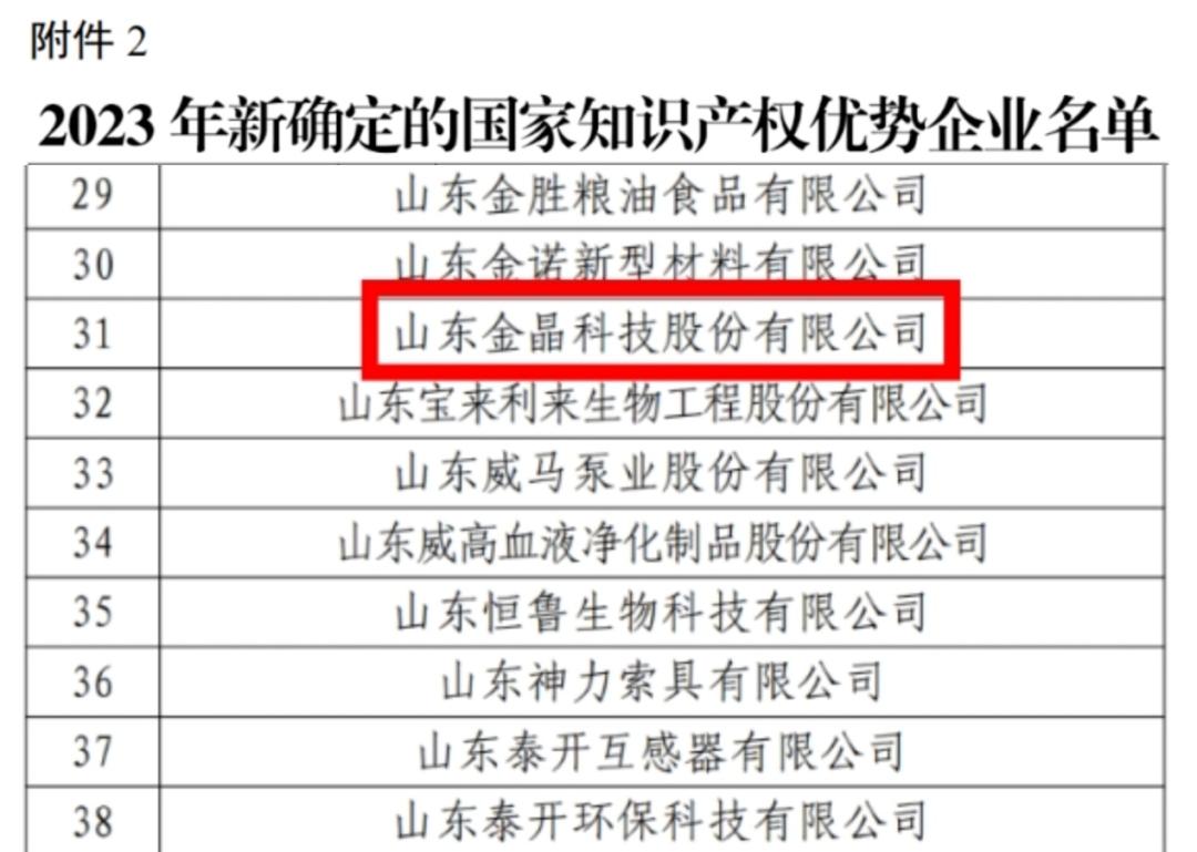 近日,國家知識(shí)產(chǎn)權(quán)局發(fā)布了《關(guān)于確定2023年新一批及通過復(fù)核的國家知識(shí)產(chǎn)權(quán)示范企業(yè)和優(yōu)勢(shì)企業(yè)的通知》,金晶科技榮獲“國家知識(shí)產(chǎn)權(quán)優(yōu)勢(shì)企業(yè)”稱號(hào)。