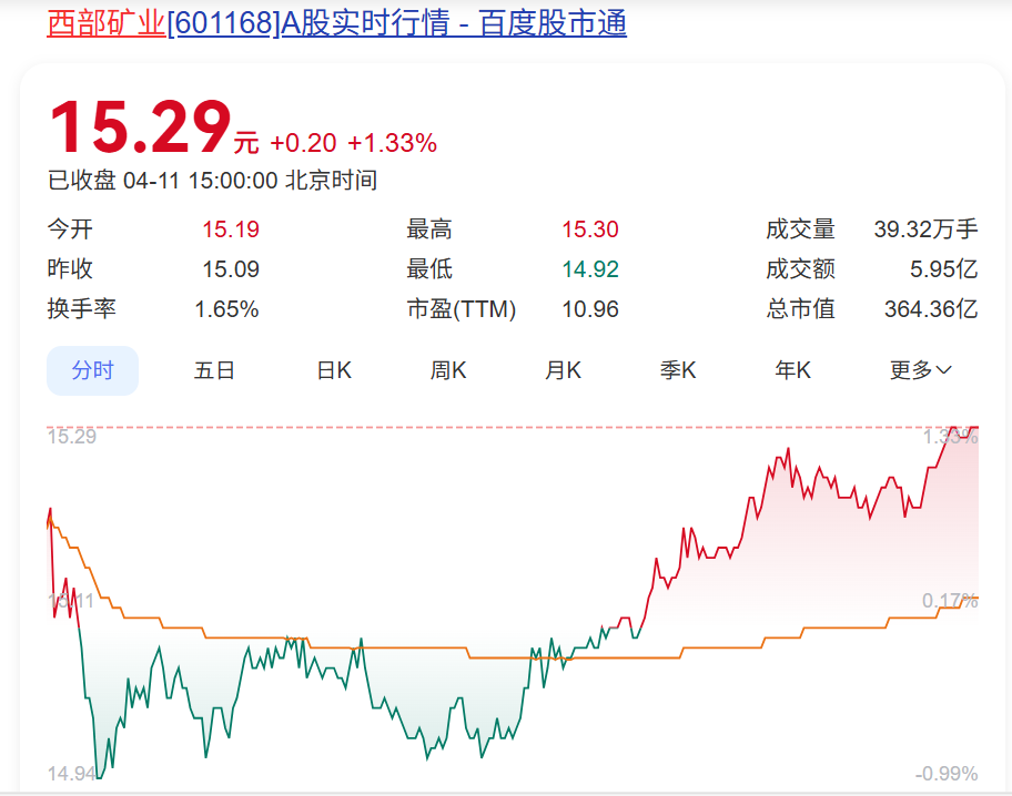 4月11日,截至收盤,西部礦業(yè)的收盤價(jià)為15.29元/股。按此收盤價(jià)計(jì)算,公司此次分紅的股息率達(dá)到6.5%。