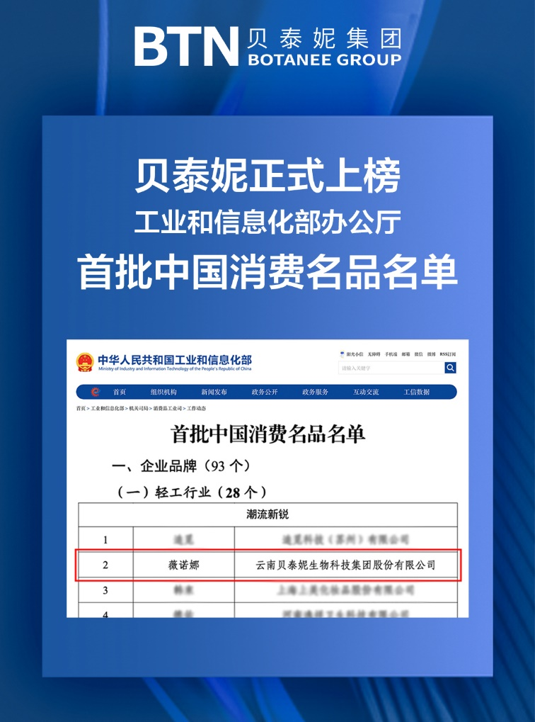 貝泰妮上榜工信部首批中國(guó)消費(fèi)名品名單(公司制圖)