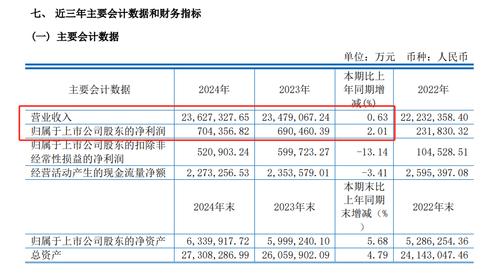 據(jù)恒力石化4月16日晚間披露的2024年年度報告,報告期內(nèi),公司實現(xiàn)營業(yè)收入2362.73億元,同比增長0.63%;實現(xiàn)歸屬于上市公司股東的凈利潤70.44億元,折合每日盈利1929.86萬元,同比增長2.01%。