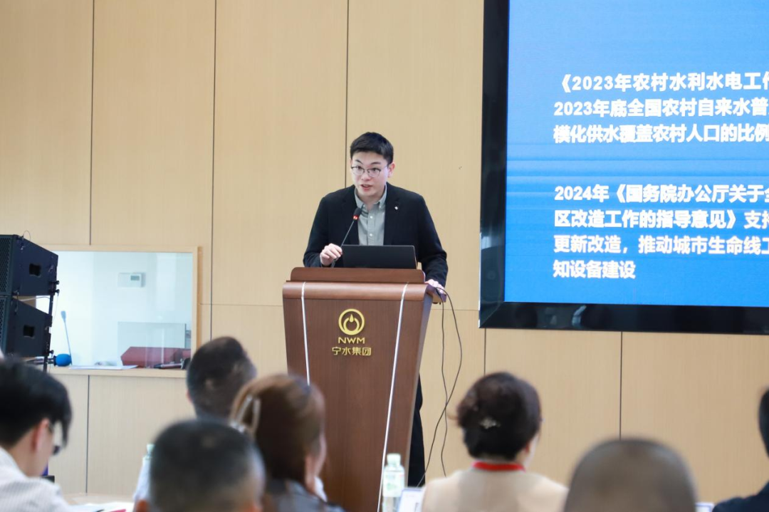 在新品發(fā)布環(huán)節(jié)中,計(jì)量技術(shù)中心副總工程師張?jiān)K?、水?wù)科技創(chuàng)新研究院產(chǎn)品研發(fā)事業(yè)部部長(zhǎng)黃旦光博士、寧水科技技術(shù)副總監(jiān)朱林勇、寧水科技副總經(jīng)理姜振波,分別從水表創(chuàng)新、城市供水管網(wǎng)監(jiān)測(cè)、長(zhǎng)距離輸水管網(wǎng)安全運(yùn)維及管道非開挖修復(fù)技術(shù)四大板塊展開演講,全方位展現(xiàn)寧水集團(tuán)覆蓋水務(wù)全產(chǎn)業(yè)鏈的“硬科技+軟實(shí)力”生態(tài)體系。