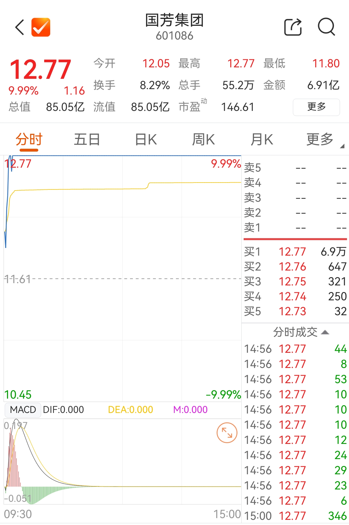 其中,國芳集團(tuán)收于12.77元/股,股價(jià)創(chuàng)歷史新高,最新A股總市值達(dá)85.05億元。該股12個(gè)交易日錄得11個(gè)漲停,累計(jì)漲幅為168.28%,位居整個(gè)消費(fèi)板塊同時(shí)段交易漲幅榜首位。