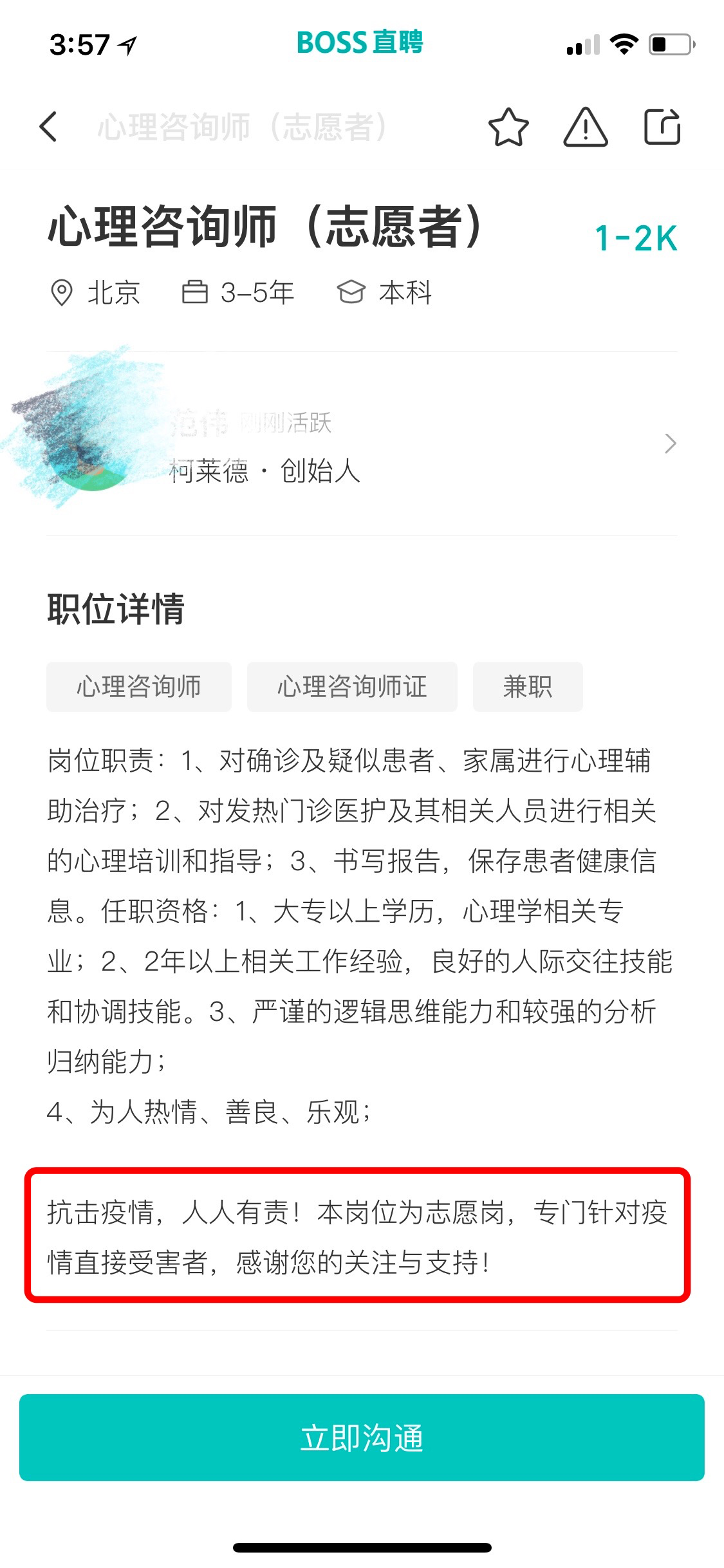 受到全球疫情反復(fù)影響,恐慌、焦慮、煩躁等心理問題頻發(fā),心理咨詢的需求量正在不斷增加。招聘平臺BOSS直聘顯示,京東、柯萊德等許多公司正在招聘大量全職或兼職心理咨詢師及心理咨詢志愿者,以應(yīng)對人們出現(xiàn)的多種心理問題。