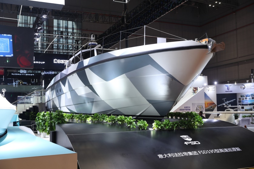繼第二屆進博會法拉帝公務船亞洲首秀后,今年進博會法拉帝195型高速巡邏船再次成為全場“流量擔當”。這艘長20米、高5.2米、重37噸的公務船,極速超過55節(jié),續(xù)航里程530海里。“相當于13小時內(nèi)可從上海直航到廈門海域,勝任海上巡邏和搜救。如200海里水域內(nèi)發(fā)生突發(fā)事件,4小時即可趕到現(xiàn)場支援,該船甚至可以實現(xiàn)淺灘登陸。”現(xiàn)場工作人員形象描述它的“超能力”。