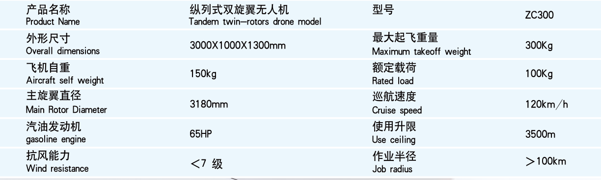 而中創(chuàng)航空的ZC300產(chǎn)品,則采用緊湊3000×1000×1300mm的機體結(jié)構(gòu),抗風能力強,最大起飛重量300Kg,飛機自重150kg,額定任務載荷100Kg。