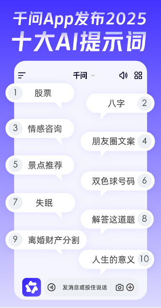 本報訊 (記者梁傲男)12月22日,千問App發(fā)布“2025十大AI提示詞”榜單,揭示了2025年人們使用AI的十大高頻場景,“股票”高居首位,遠(yuǎn)超其他工具性、生活類或情感類話題。這一結(jié)果不僅折射出人們對資本市場的高度關(guān)注,也標(biāo)志著AI正深度融入個人的投資決策。