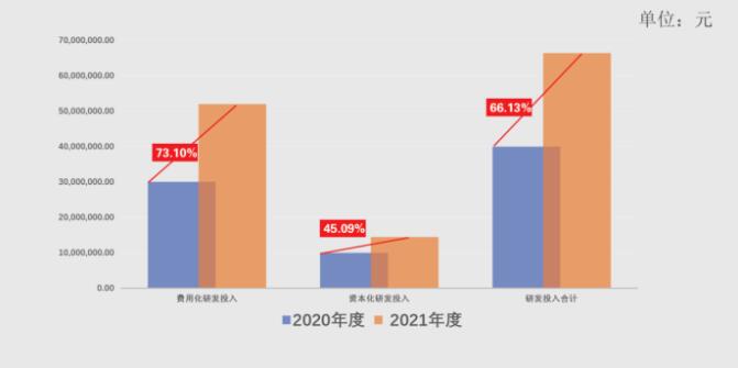 公司積極實施自主創(chuàng)新的發(fā)展戰(zhàn)略,持續(xù)加強技術研發(fā)投入。年報顯示,2021年全年研發(fā)投入占營業(yè)收入的比例為15.31%,研發(fā)投入總額6,632.04萬元,同比增長66.13%。截至2021年年底,公司累計申請專利248項,授權且有效專利127項,境外專利覆蓋歐洲、美國、日本、韓國、新加坡等國家和地區(qū)。