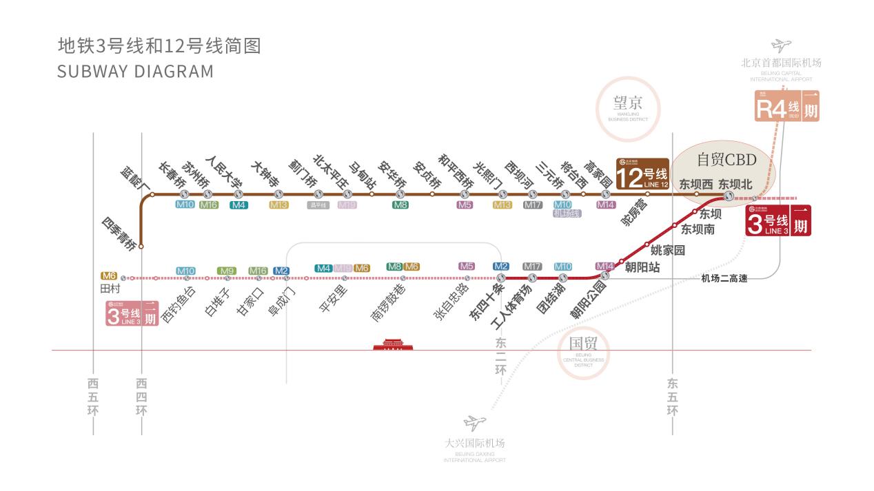 隨著地鐵3號線與12號線的開通,東壩迅速融入了北京的交通網絡。地鐵3號線將東壩與三里屯、工體等核心商務區(qū)連接,而12號線則貫穿海淀、西城、東城和朝陽四大核心區(qū),使得東壩區(qū)域成為一個交通樞紐。無論是工作通勤還是日常出行,居民都能享受到快速便捷的出行體驗。