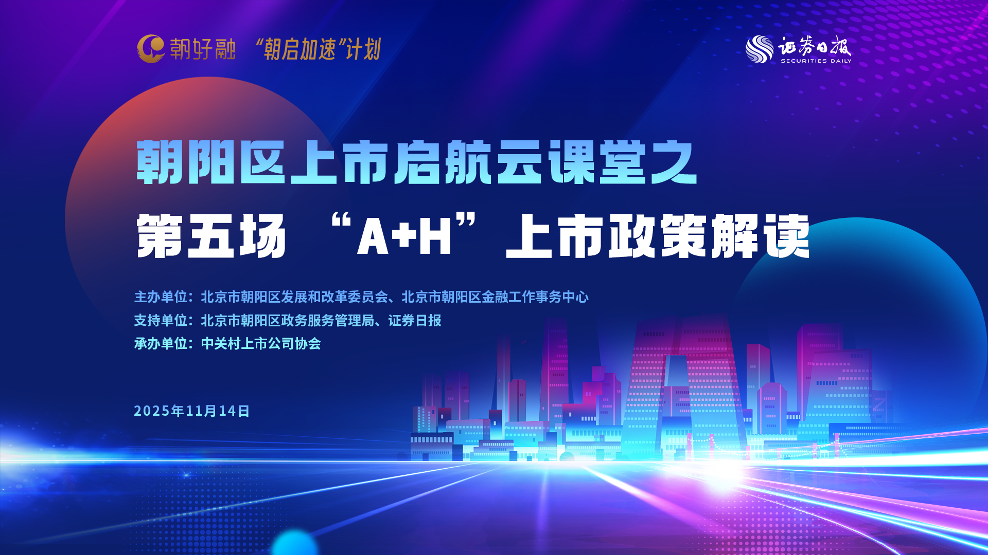 歡迎光臨證券日?qǐng)?bào)網(wǎng)。朝陽區(qū)上市啟航云課堂之第五場(chǎng)“A+H”上市政策解讀將于2025年11月14日(星期五)14:30--17:40舉行。[詳細(xì)]