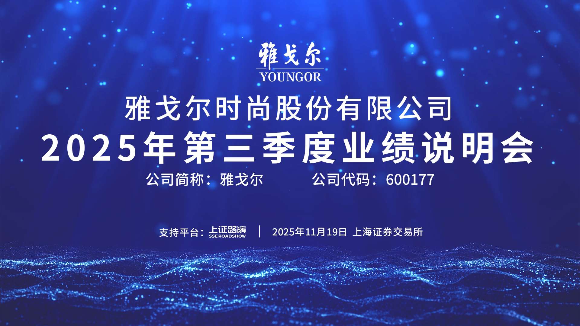 歡迎光臨證券日?qǐng)?bào)網(wǎng)。雅戈?duì)枙r(shí)尚股份有限公司2025年第三季度業(yè)績(jī)說明會(huì)將于2025年11月19日9:30-11:00舉行。[詳細(xì)]