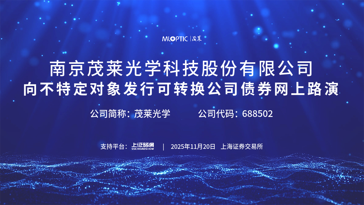 歡迎光臨證券日?qǐng)?bào)網(wǎng)。茂萊光學(xué)向不特定對(duì)象發(fā)行可轉(zhuǎn)換公司債券網(wǎng)上路演于2025年11月20日(星期四)15:00--16:00舉行。[詳細(xì)]