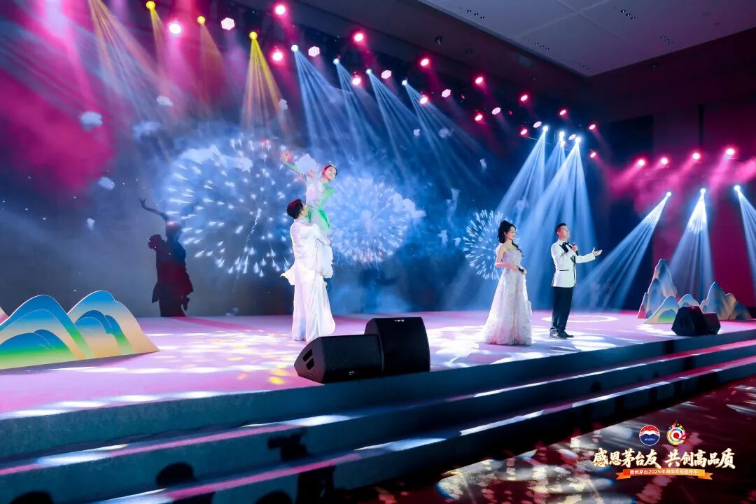 啟動(dòng)儀式上,領(lǐng)導(dǎo)嘉賓共同按下按鈕,隨著大屏光影流轉(zhuǎn),卷軸徐徐展開(kāi),標(biāo)志著貴州茅臺(tái)2025年湖南茅友嘉年華正式啟航,寓意著山脈綿延從茅臺(tái)延伸至長(zhǎng)沙,象征茅臺(tái)故事行至瀟湘、續(xù)寫(xiě)新篇。情景秀《絲路飄湘》以歌舞形式生動(dòng)地展現(xiàn)了茅臺(tái)從赤水到湖湘的浪漫之旅,一條紅絲帶穿過(guò)三湘四水,最終抵達(dá)橘子洲頭,正如茅臺(tái)文化在與湖湘文化的交織共鳴中所呈現(xiàn)出的美好生活畫(huà)卷。