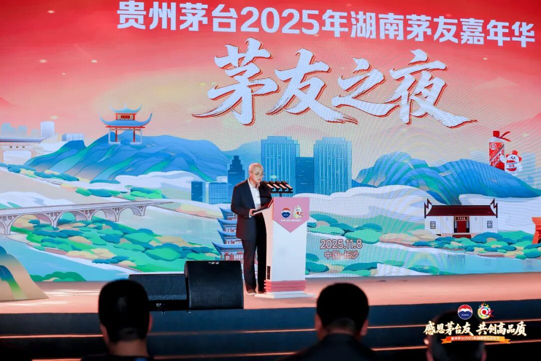 段建樺在致辭中表示,茅臺(tái)承襲“順天敬人 明理厚德”的企業(yè)價(jià)值觀(guān),遵循釀酒的自然本真,端午制曲、重陽(yáng)下沙,順應(yīng)時(shí)節(jié)變化,讓每一個(gè)釀造環(huán)節(jié)都成為對(duì)天地心懷謙卑的致敬。茅臺(tái)始終堅(jiān)持尊重消費(fèi)者的初衷,以卓越品質(zhì)回饋每一份信任,嚴(yán)格把控從原料到出廠(chǎng)的每一個(gè)環(huán)節(jié),持續(xù)開(kāi)發(fā)貼合不同場(chǎng)景的優(yōu)質(zhì)產(chǎn)品;始終以消費(fèi)者為中心,以真誠(chéng)服務(wù)回應(yīng)每一份期待,不斷完善服務(wù)體系,讓每一位茅友感受一家親的溫暖。未來(lái),茅臺(tái)將始終與消費(fèi)者攜手,與茅友共釀風(fēng)雅,共赴美好追求,共擔(dān)道義踐行社會(huì)責(zé)任,推動(dòng)茅臺(tái)文化與湖湘文化深度融合,讓茅臺(tái)的醬香飄滿(mǎn)三湘四水,讓湖湘文化的深厚底蘊(yùn)為茅臺(tái)文化注入新的活力。