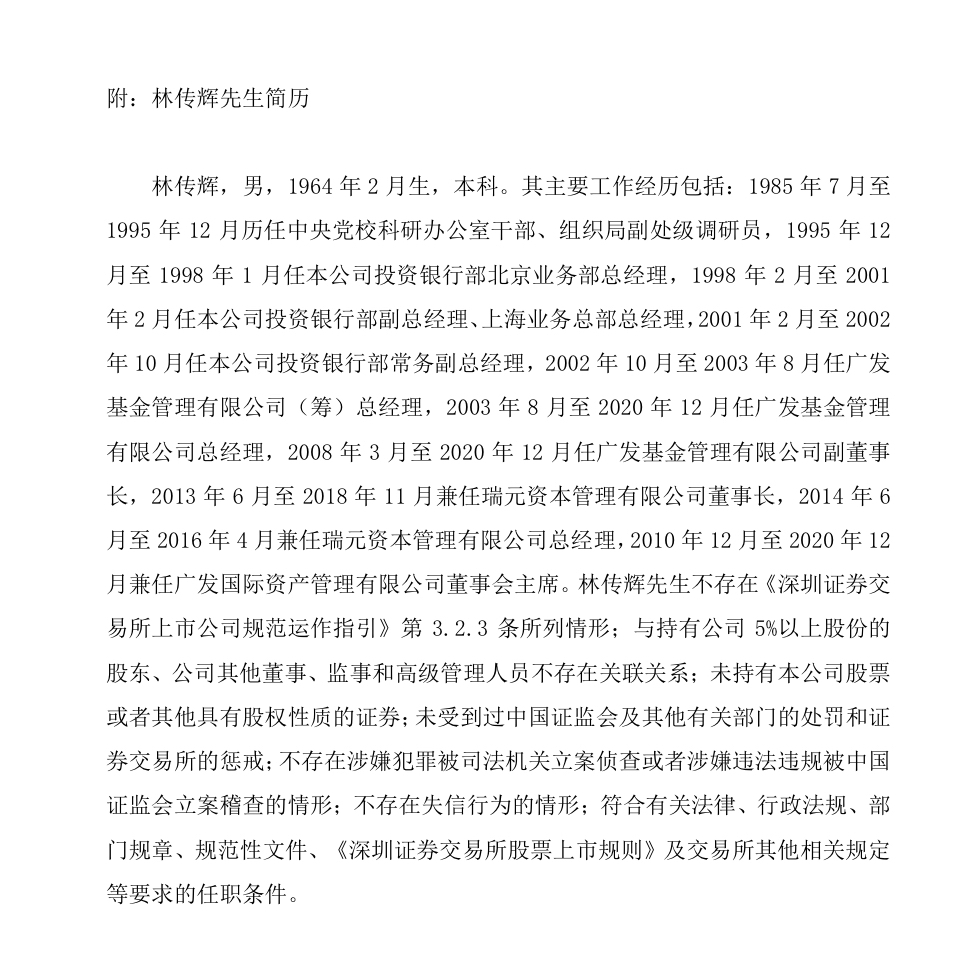 本報(bào)訊 12月11日,廣發(fā)證券發(fā)布公告稱,公司第十屆董事會(huì)同意聘任林傳輝擔(dān)任公司總經(jīng)理。公司董事長(zhǎng)孫樹(shù)明不再兼任公司總經(jīng)理職務(wù)。(記者/周尚伃)