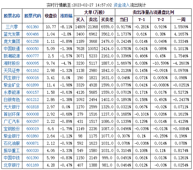 2月24日兩市機(jī)構(gòu)大單拋盤40股(名單)2023-02-24 15:14