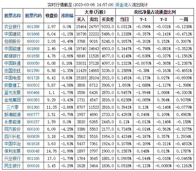 3月3日兩市機(jī)構(gòu)大單拋盤40股(名單)2023-03-03 15:12