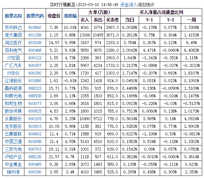 3月9日兩市機(jī)構(gòu)大單拋盤40股(名單)2023-03-09 15:13