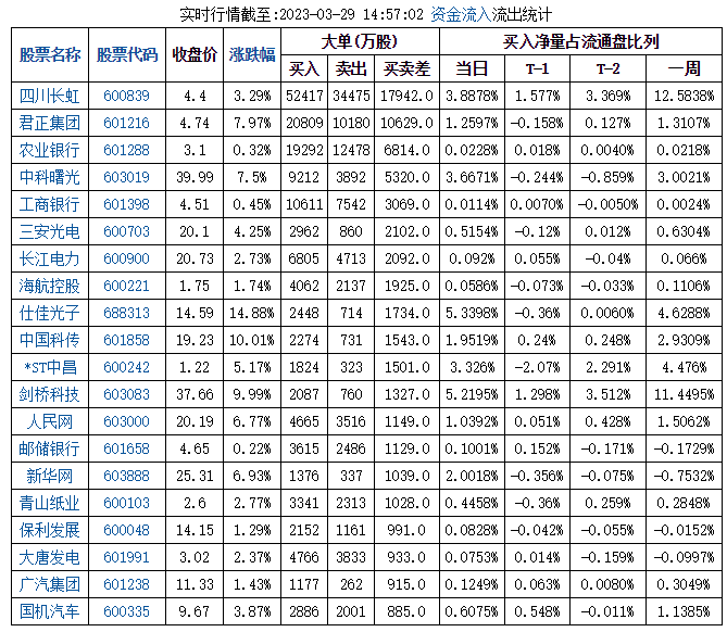 3月29日兩市機構(gòu)大單拋盤40股(名單)2023-03-29 15:18