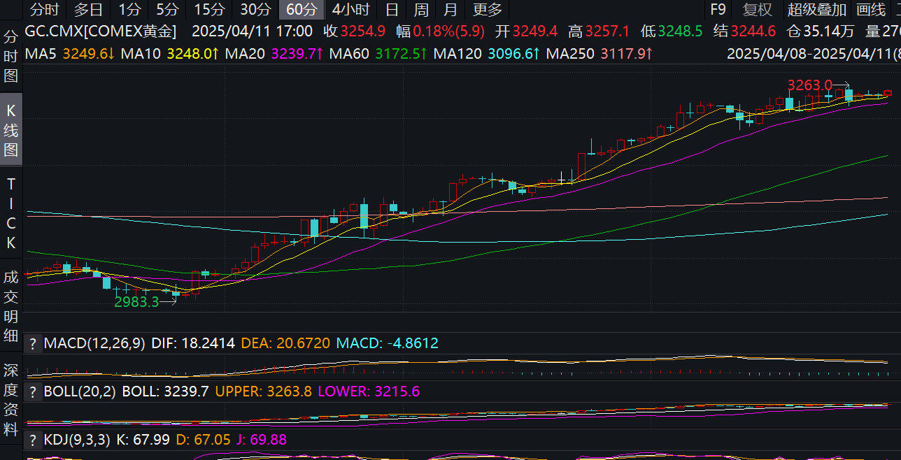 北京時間4月13日,紐約商業(yè)交易所(COMEX)黃金期貨再度創(chuàng)出歷史新高,主力6月合約盤中最高點達(dá)3263美元/盎司。截至記者發(fā)稿,該合約報收于3255美元/盎司。