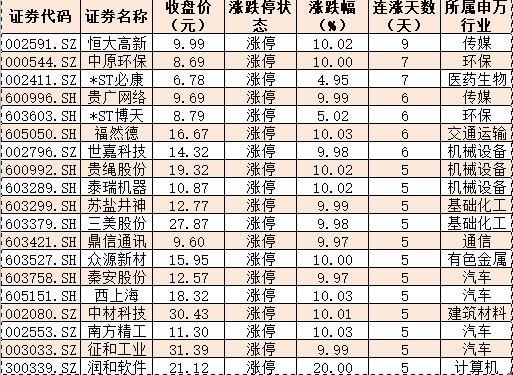 漲停板方面,7月19日,有101只個股漲停,其中,有19只漲停股,股價已連續(xù)上漲5個交易日以上。從行業(yè)方面看,汽車行業(yè)漲停股最多,達15只,緊隨其后的是計算機、機械設(shè)備等行業(yè),漲停股數(shù)量均為9只。