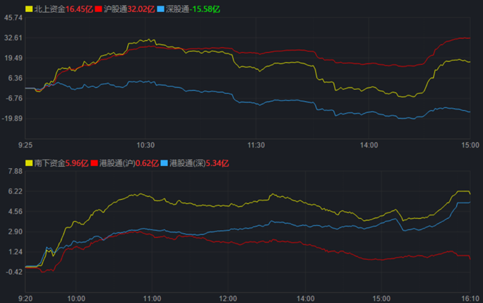 今日A股三大股指震蕩,滬指盤中最低下探至3246.73點,尾盤逐步回升,截至收盤,上證指數(shù)跌0.06%報3269.97點,深證成指跌0.49%報12394.02點,創(chuàng)業(yè)板指跌0.51%報2737.31點;兩市合計成交額達9414.2億元,北向資金凈買入16.45億元,其中,滬股通和深股通分別凈買入32.02億元和-15.58億元??傮w來看,A股漲少跌多。