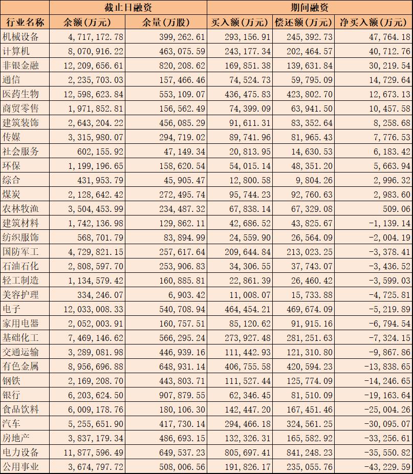 表:7月25日申萬一級(jí)行業(yè)兩融交易情況: