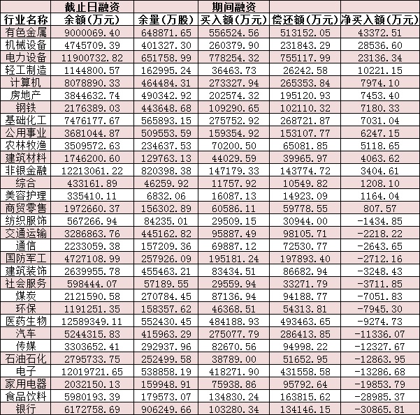 表:7月26日申萬一級行業(yè)兩融交易情況: