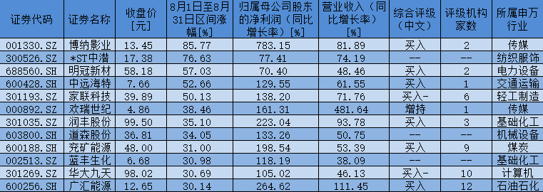 表:營收與歸母凈利潤同比增幅超30%,且8月份漲幅超30%的個股