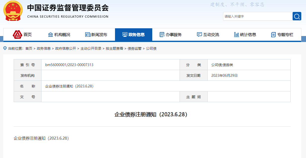 據(jù)證監(jiān)會(huì)網(wǎng)站6月29日消息,近日證監(jiān)會(huì)對(duì)6個(gè)企業(yè)債券項(xiàng)目依法履行了注冊(cè)程序,并核發(fā)了注冊(cè)批文。這是自4月21日企業(yè)債發(fā)行審核職責(zé)劃轉(zhuǎn)啟動(dòng)以來(lái),證監(jiān)會(huì)核發(fā)的第三批企業(yè)債注冊(cè)批文。