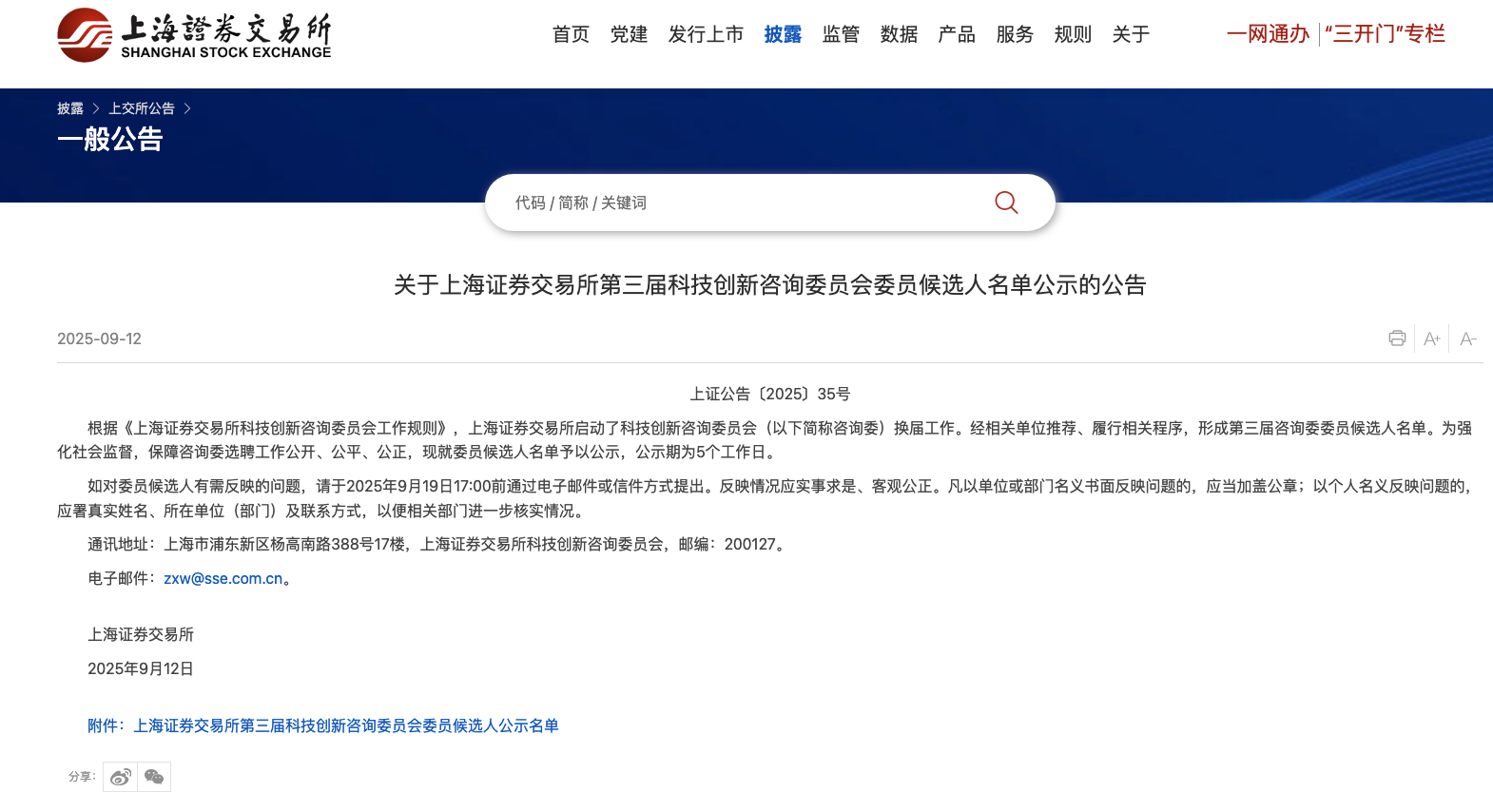 圖注:上海證券交易所第三屆科技創(chuàng)新咨詢委員會委員候選人公示名單