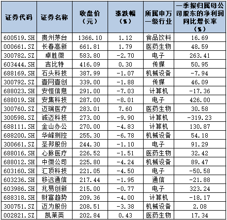 表:部分高價股市場表現(xiàn)一覽