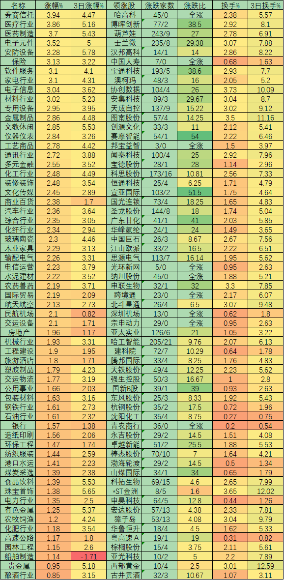 表:周三各行業(yè)市場表現(xiàn)一覽