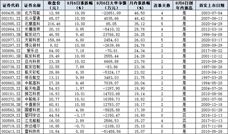 8月6日兩市板塊龍虎榜排名(名單)2020-08-06 15:15