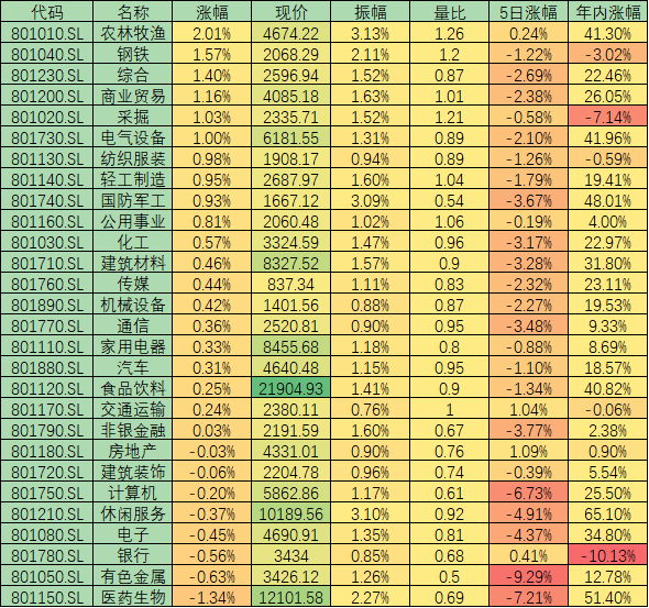 表:周四申萬一級行業(yè)市場表現(xiàn)一覽