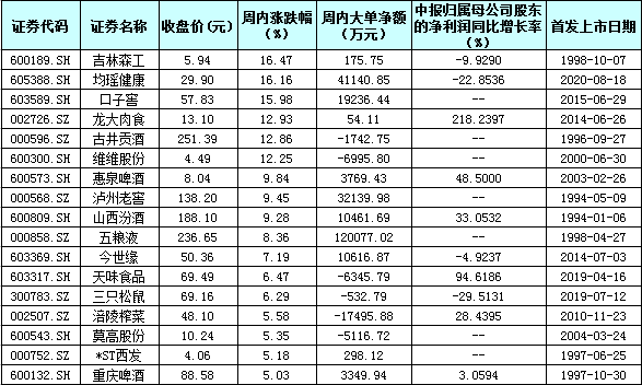 表:部分食品飲料股本周表現(xiàn)一覽