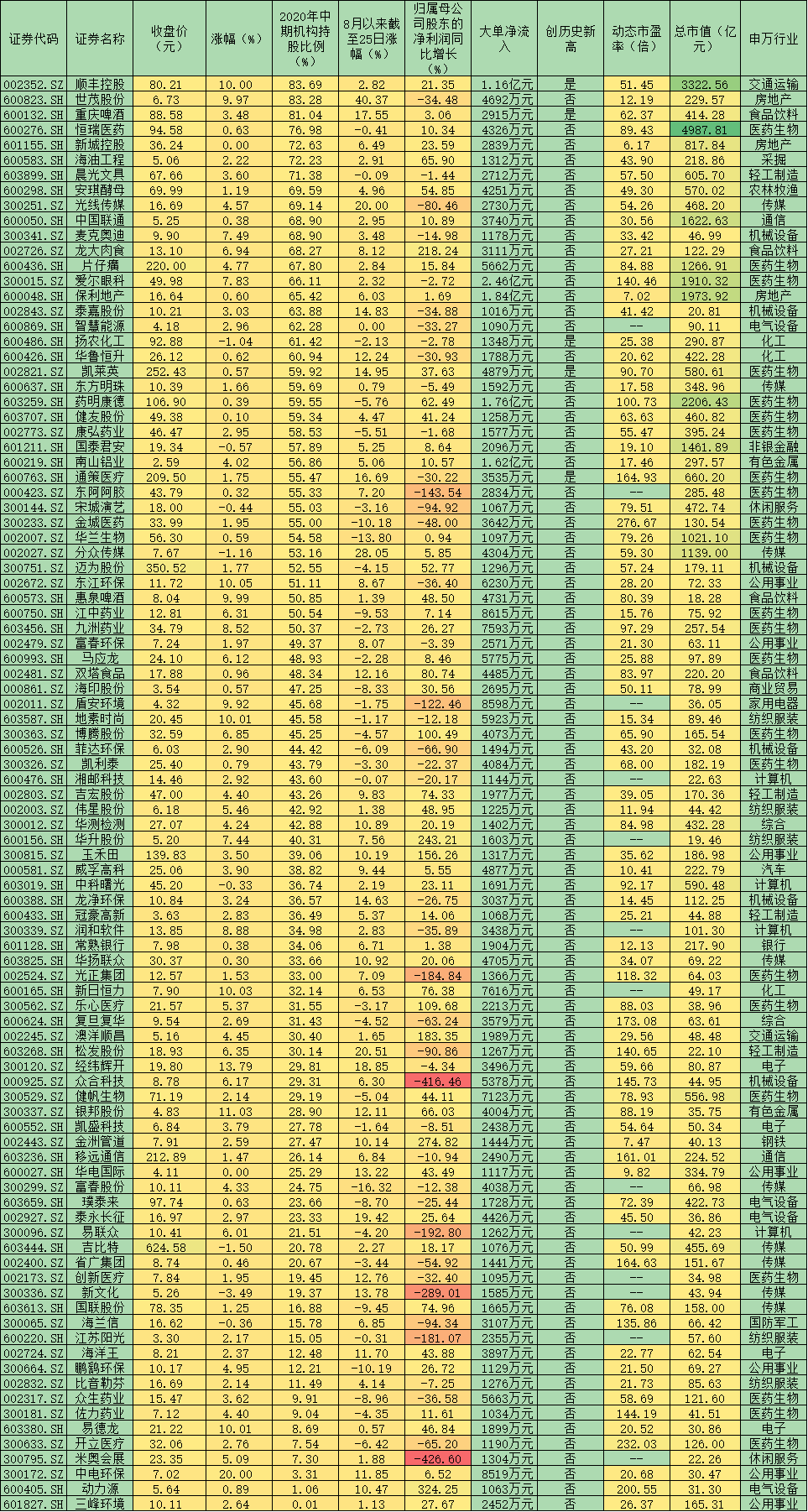 8月26日兩市機(jī)構(gòu)大單搶籌40股(名單)2020-08-26 15:18