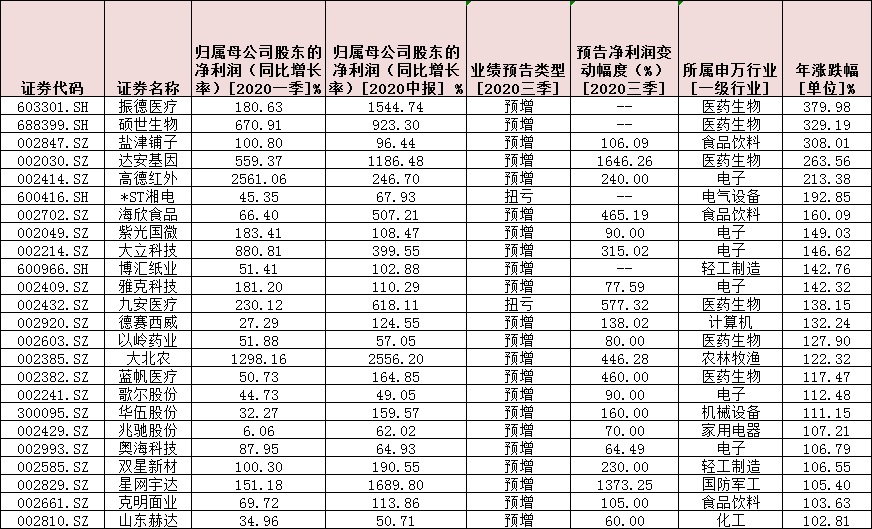 統(tǒng)計發(fā)現(xiàn),在上述110只三連增的個股中,今年以來,有78只個股跑贏同期上證指數(shù)(年內(nèi)累計漲幅11.6%),占比達70.9%。其中,振德醫(yī)療、碩世生物、鹽津鋪子、達安基因、高德紅外等個股股價年內(nèi)累計漲幅均超200%。另外,包括海欣食品、紫光國微、大立科技、博匯紙業(yè)、雅克科技、九安醫(yī)療等在內(nèi)的19只個股年內(nèi)累計漲幅均超100%,盡顯強勢。