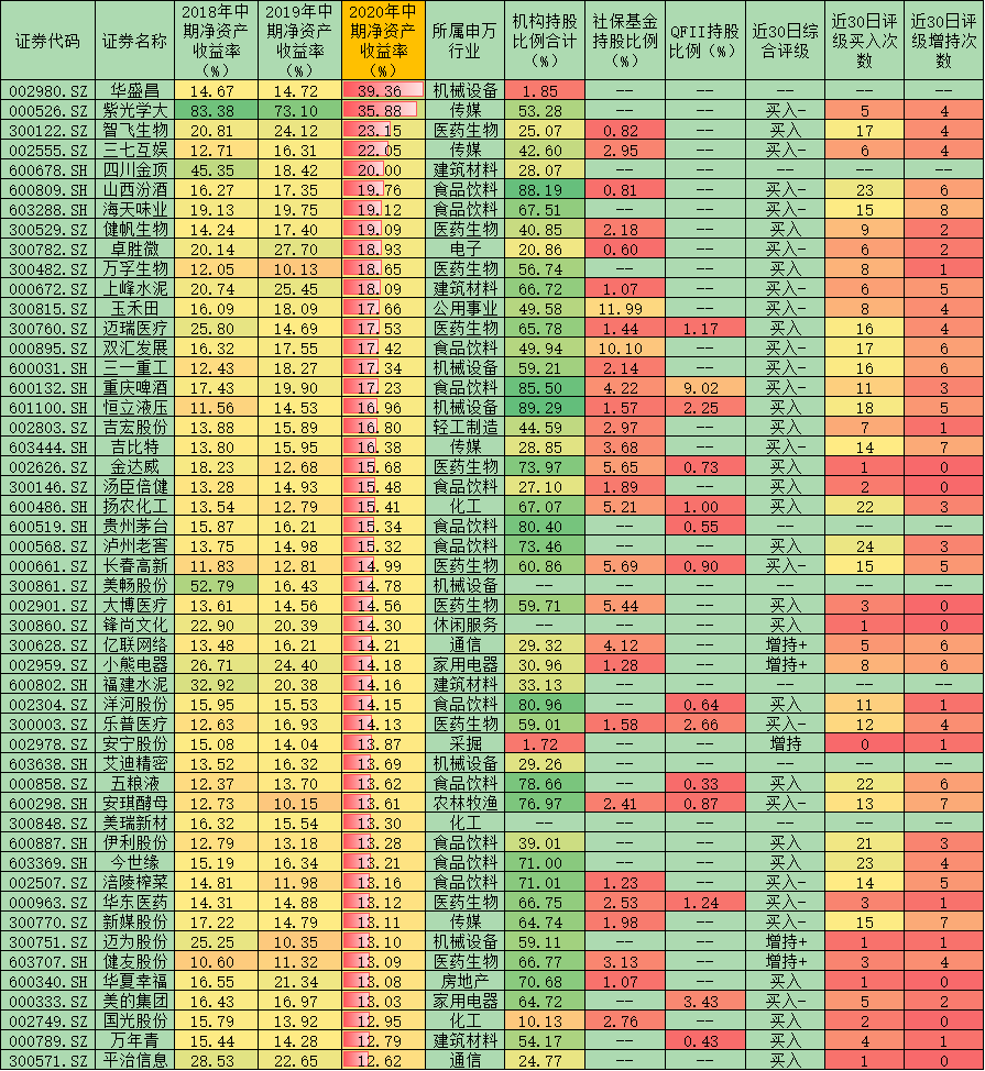 今年,在新冠肺炎疫情的影響下,A股半年報(bào)凈資產(chǎn)收益率TOP50公司數(shù)據(jù)仍表現(xiàn)不凡,這為各路資金配置A股帶來(lái)了堅(jiān)定信心。