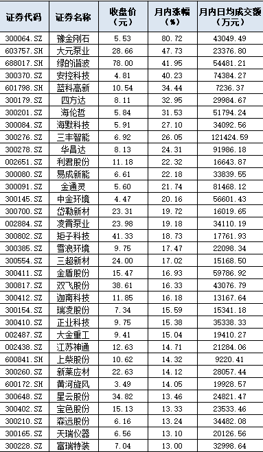 表:月內(nèi)漲幅居前的機械設(shè)備股一覽