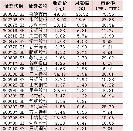 表:10月以來實現(xiàn)上漲的鋼鐵股情況