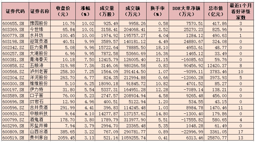 近期機構也紛紛看好白酒概念股,最近一個月內(nèi),有15只白酒概念股獲機構給予“買入”或“增持”等看好評級,其中,山西汾酒獲得17家機構看好評級,看好評級家數(shù)最多,貴州茅臺、古井貢酒、瀘州老窖等3只個股均獲得10家及以上機構看好評級。