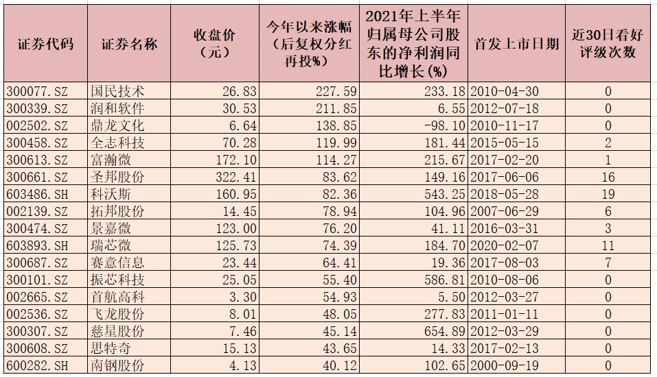 表:今年以來漲幅超40%的人工智能概念股一覽
